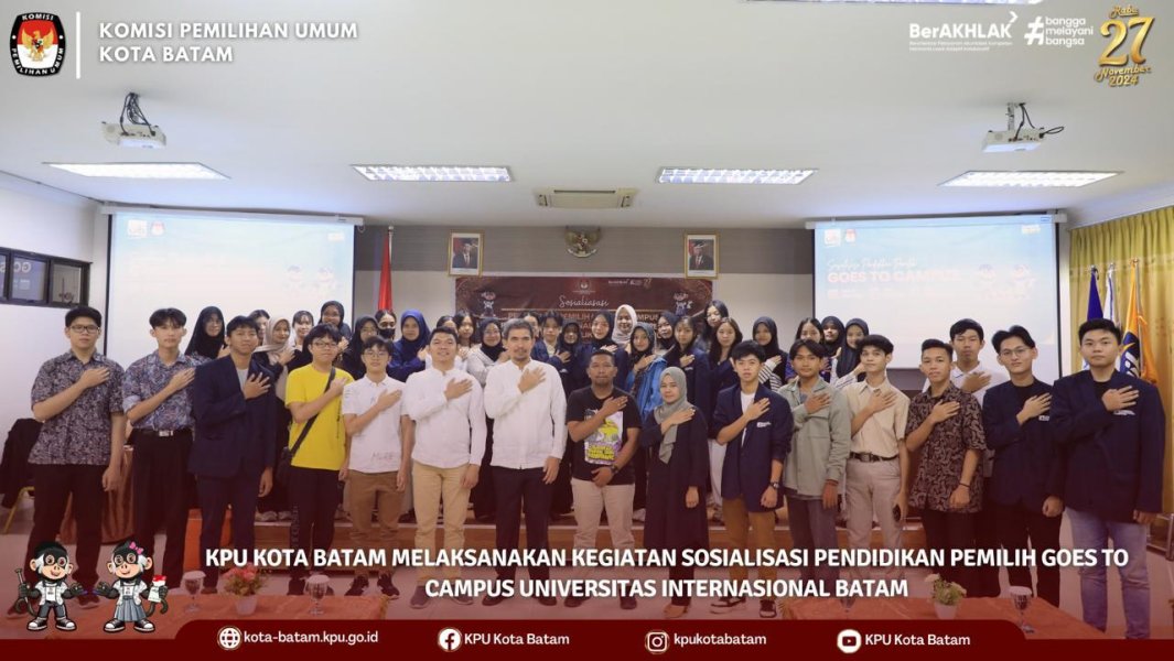 #temanpemilih, KPU Kota Batam melaksanakan Kegiatan Sosialisasi Pendidikan Pemilih Goes To Campus Universitas Internasional Batam pada Pemilihan Walikota dan Wakil Walikota Batam Tahun 2024, yang dilaksanakan di Kampus Universitas Internasional Batam, Jum'at (27/9/2024).