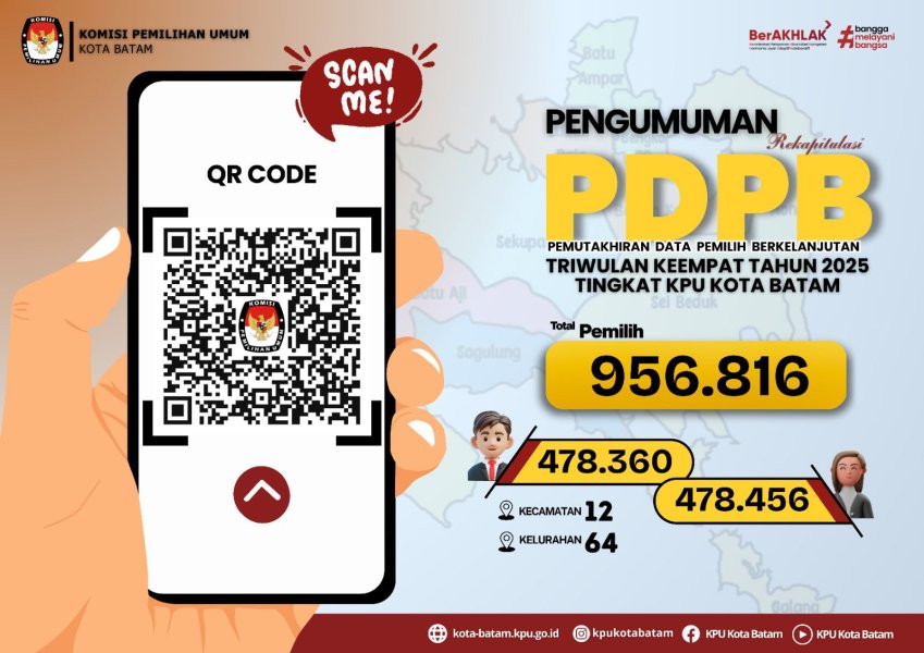 Komisi Pemilihan Umum (KPU) Kota Batam telah melaksanakan Rapat Pleno Terbuka Rekapitulasi Pemutakhiran Data Pemilih Berkelanjutan (PDPB) Triwulan IV Tahun 2025 pada Senin, 8 Desember 2025.