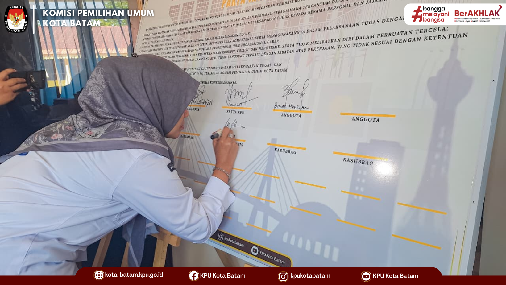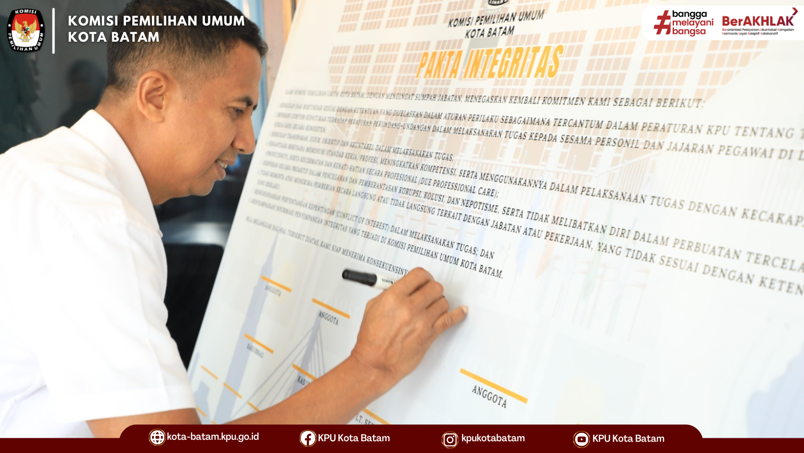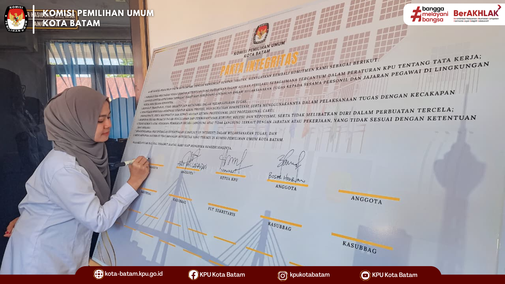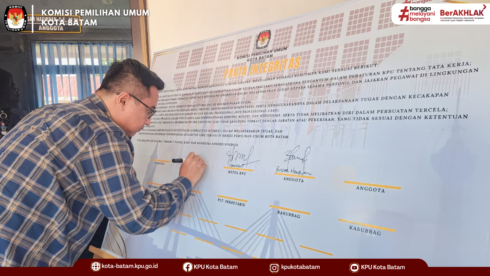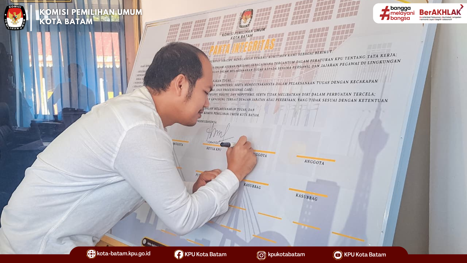 Sementara itu, penandatanganan Pakta Integritas menjadi pernyataan komitmen moral dan etika seluruh jajaran KPU Kota Batam untuk menjunjung tinggi nilai-nilai kejujuran, independensi, netralitas, serta menolak segala bentuk praktik korupsi, kolusi, dan nepotisme dalam pelaksanaan tugas kepemiluan dan administrasi kelembagaan.