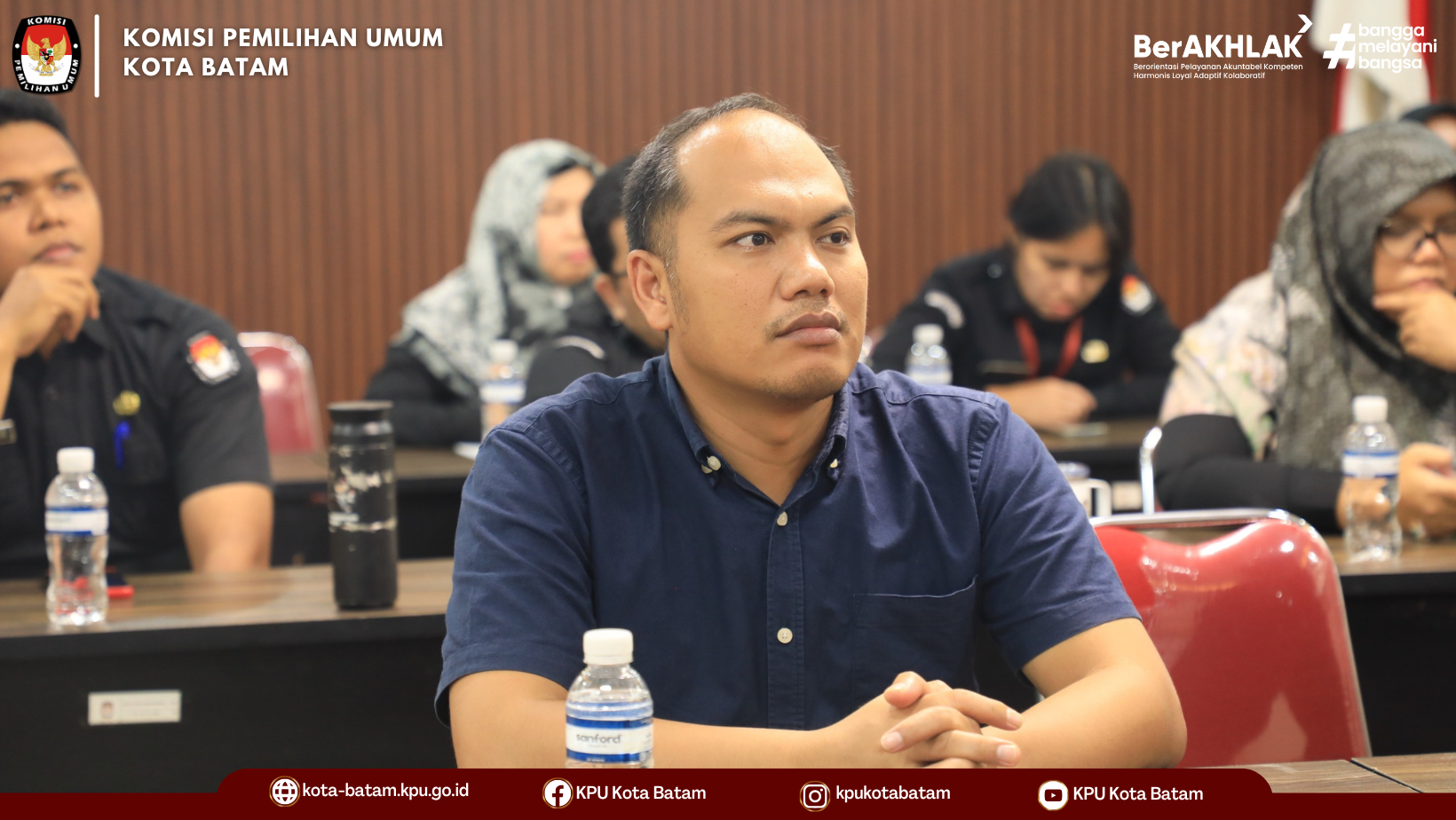 Kegiatan ini dihadiri oleh Anggota KPU Kota Batam Bapak Bosar Hasibuan dan Sekretaris KPU Kota Batam Bapak Anwar serta Kasubbag dan Staf Sekretariat KPU Kota Batam. Hadir pula sebagai narasumber dari Inspektorat KPU RI yaitu Lalu Agus Sudrajat, Fungsional Auditor Madya, dan Tri Setyo Nugroho, Fungsional Auditor Muda.