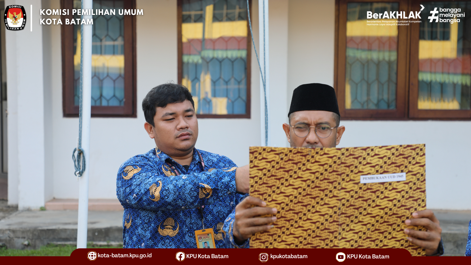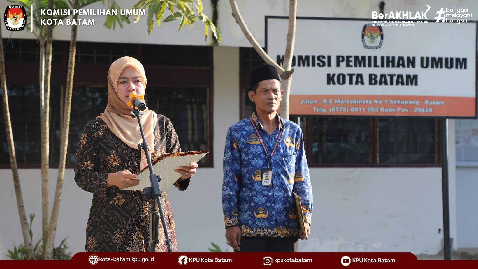 Turut hadir Anggota KPU Kota Batam Rosdiana, Sekretaris KPU Kota Batam Anwar, Pemimpin upacara Kasubbag SDM Firmana Akbar serta diikuti oleh seluruh Sekretariat KPU Kota Batam.